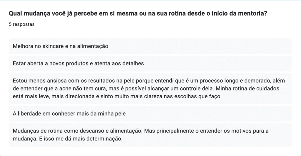 Cada pele é única, mas a maioria das participantes nota mudanças entre 1 e 3 semanas: